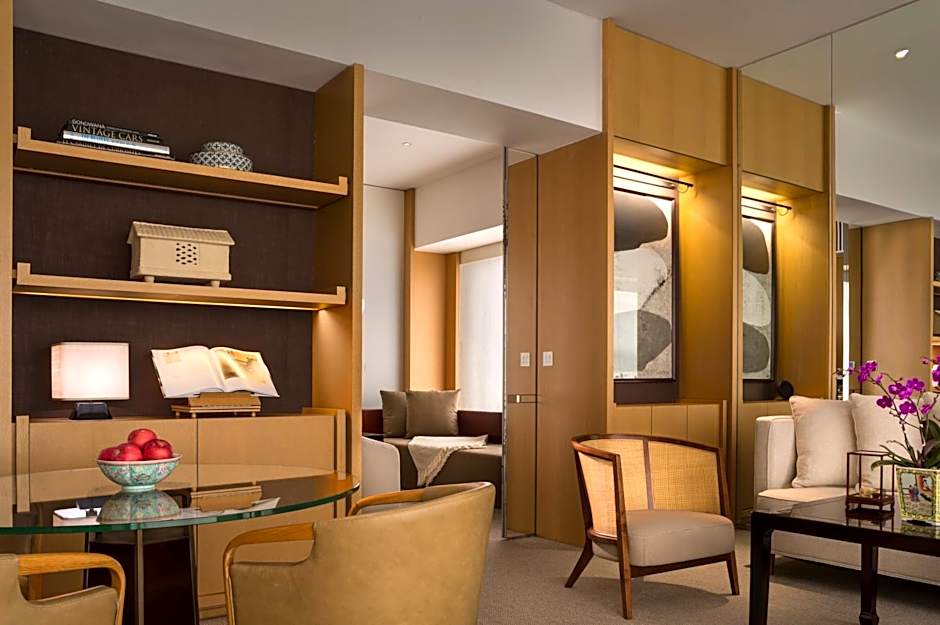 This twin suite features a separate living and dining area. Each unit is featured with a private bathroom with bathrobes, free toiletries and bath facilities. Floor-to-ceiling windows offer breathtaking views of downtown Chengdu.