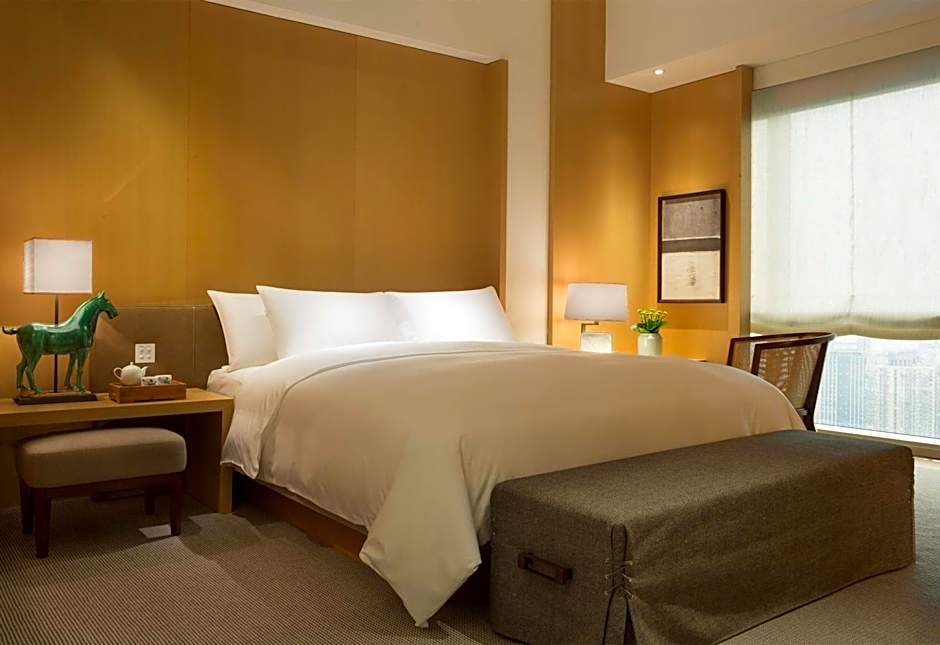 Located on floors 33-39, the suite features access to Grand Club Lounge with club benefits and the following privileges: - Complimentary breakfast at Grand Café on the 15th floor during 6:30 - 10:30 (Monday - Friday) and 6:30 - 11:00 (Saturday, Sunday & Public Holidays) - Complimentary evening cocktail from 17:30 to 19:30 at Grand Club Lounge - All day complimentary tea, coffee, refreshments at Grand Club Lounge - Complimentary one-hour use of the Grand Club meeting room per stay(advance reservations are required) This well-equipped room has an electric kettle and air conditioning. Each unit is featured with a private bathroom with bathrobes, free toiletries and bath facilities. Floor-to-ceiling windows offer breathtaking views of downtown Chengdu.